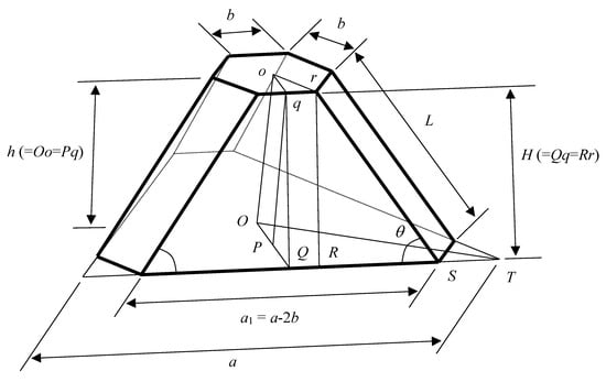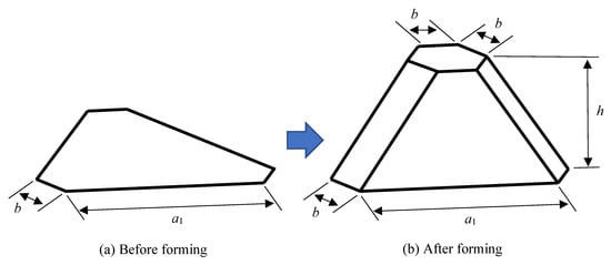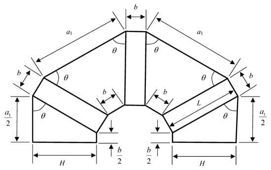 The shape parameters a1, b, H, L, and of the plane part shown in Figure 7 can be calculated by directly substituting the shape parameters a, b, and h of the truss core shown in Figure 6 into Equations (3)–(6).