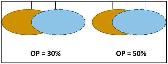 A schematic showing cross sections for the 30 and 50% overlapping beads.