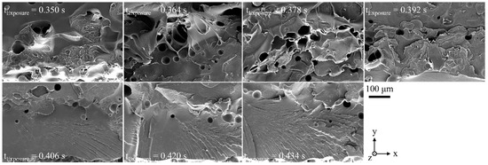 Scanning electron micrographs of fracture surfaces depending on the underlying exposure time.