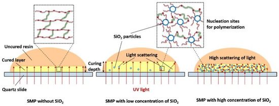 - Chiu, S.H.; Wu, D.C. Preparation and Physical Properties of Photopolymer/SiO2 Nanocomposite for Rapid Prototyping System. J. Appl. Polym. Sci. 2008, 107, 3529–3534. [Google Scholar] [CrossRef]