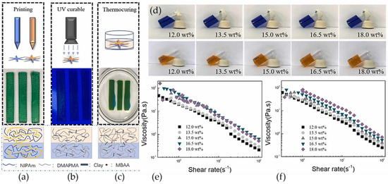 Direct ink writing is a material extrusion technique that uses materials, such as monomers/oligomers, crystal/silicone elastomers, crosslinkers and fillers. The most critical issue facing DIW 3DP is modified ink’s rheology to be printable thixotropic fluid; this modification can be achieved by incorporating additives such as nanoparticles. In addition, DIW requires the material to be shear thinned for extrusion through a fine nozzle and maintain its shape after extrusion.