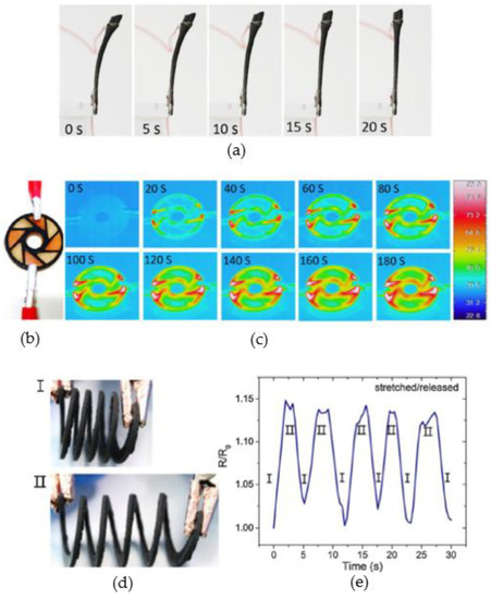 - Xiao, Y.Y.; Jiang, Z.C.; Hou, J.B.; Chen, X.S.; Zhao, Y. Electrically Driven Liquid Crystal Network Actuators. Soft Matter 2022, 18, 4850–4867. [Google Scholar] [CrossRef]