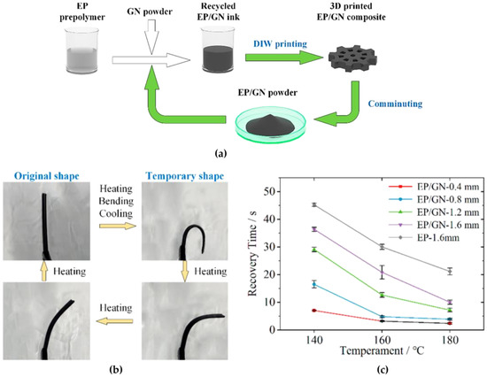 - Chi, H.; Lin, Z.; Chen, Y.; Zheng, R.; Qiu, H.; Hu, X.; Bai, H. Three-Dimensional Printing and Recycling of Multifunctional Composite Material Based on Commercial Epoxy Resin and Graphene Nanoplatelet. ACS Appl. Mater. Interfaces 2022, 14, 13758–13767. [Google Scholar] [CrossRef]