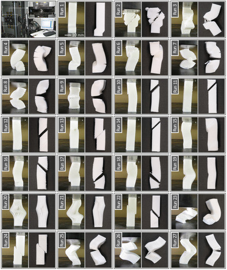 | Run | Weight (g) | Printing Time (s) | sB [MPa] | E [MPa] | Toughness [MJ/m3] |