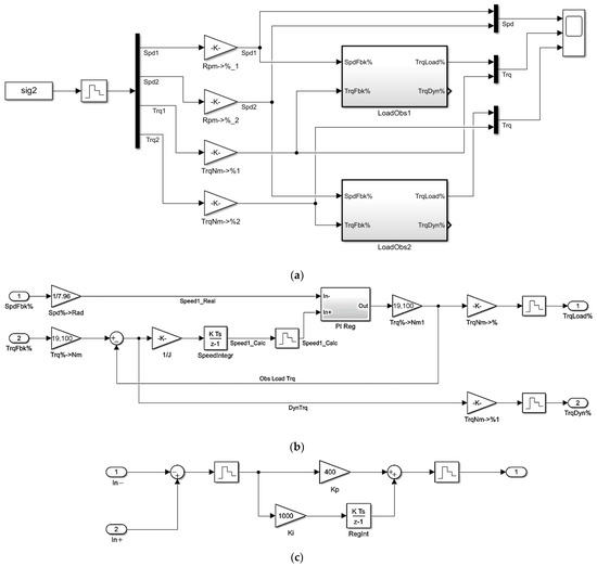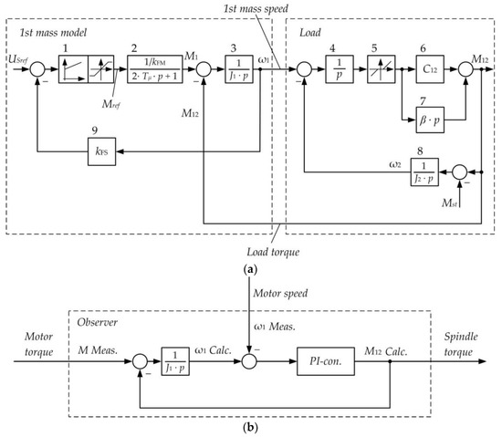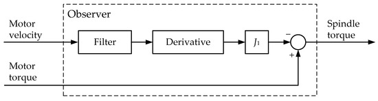 The 1st mass load is the spindle torque. Accordingly, the torque observer can be implemented based on the single-mass system load measurement. To do this, a structure can be applied without calculating the velocity derivatives. Figure 6b shows the diagram describing the proposed torque recovery principle.