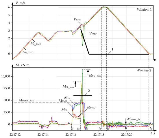 • The experimental evaluation of the speed and efficiency of the emergency braking system. Such research can be conducted by the method of mathematical modeling. However, the paper considers the application of the digital elastic torque observer, which is referred to in its title. Therefore, emergency modes are researched by the method of passive coordinate observation, which makes it possible to identify signs of a pre-emergency situation.
