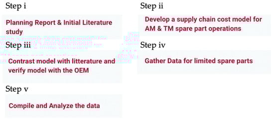 The aim of the study is to quantify and compare the supply chain costs for AM and TM for long-tail automotive spare parts. A planning report was initially made to derive the scope of the paper. The planning report was used to create alignment between various stakeholders including the OEM. Moreover, to achieve the aim of the study, the research questions have been designed to firstly map the cost components in the SPSC, and secondly to quantify them using either TM or AM as a production method. To answer the research questions the following actions were performed (Figure 1);