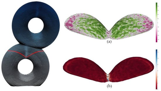 (a) values and (b) values plotted on a curved layer extracted from the optimised RBF-based distance field (our method) of the two-genus model (NB = 8).