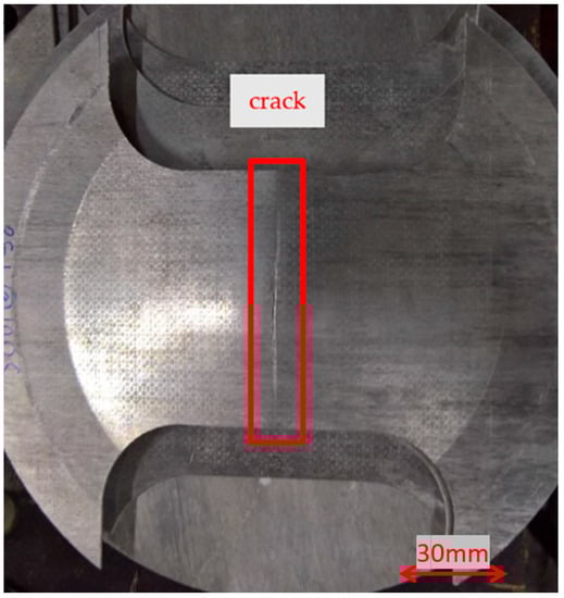 A hydraulic press with a speed of about one mm/s is used to form the samples until a crack appears. Nylon and oil are applied between the punch and the test piece as a lubricant to achieve cracks near the dome’s apex, as depicted in Figure 5.