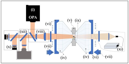 Important elements of a complete LRS-DAC system are shown in Figure 5. This includes cw or pulsed laser sources (i), beam delivery optics designed to provide a well-focused laser spot (viii), transparent anvils (iv), a gasket chamber enclosing the experiment (v), diamond seats (vi), and a mechanism for driving the diamond anvils (vii). In addition, measurement and characterisation tools observing the reaction zone typically include (at a minimum): infrared pyrometers (x) to monitor the temperature profile in the reaction zone, a high-resolution spectrometer for pressure measurements (e.g., using Ruby fluorescence [239]) (xi), and microscopes for general observation and process control (xii) [27,240].