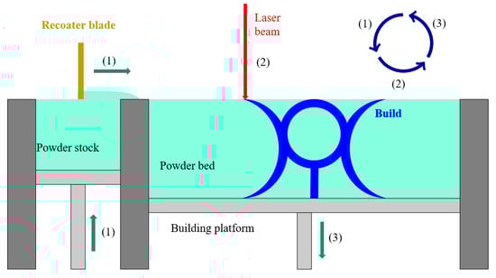 Schematic drawing of the workflow of the typical SLM process where the part shape is not fixed.