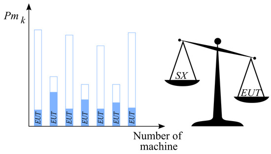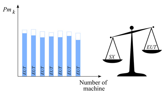 where (Equation (6)) is the utilization of the v-th tool type in the best (ideal) solution.
