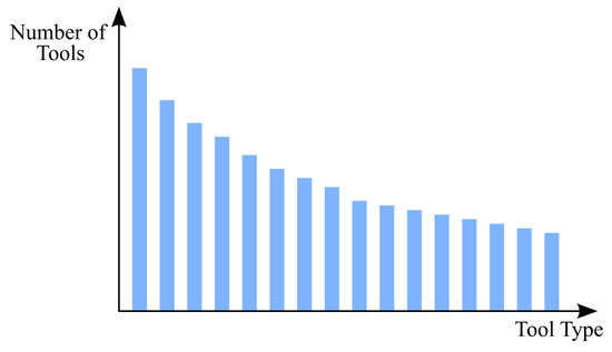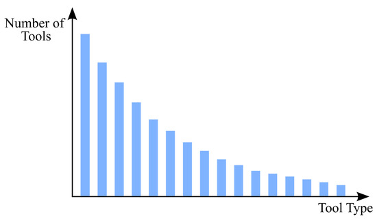 Frequency probability distribution of tool types with a more pronounced damped exponential distribution—Tool Type Distribution Scenario 06.