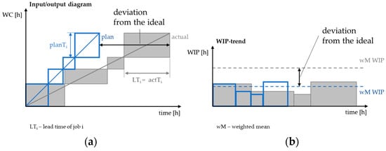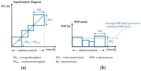 (a) Input/output diagram and (b) inventory development for an ideal process (based on this study by Nyhuis, P. and Wiendahl, H.-P.) [23] (p. 61).