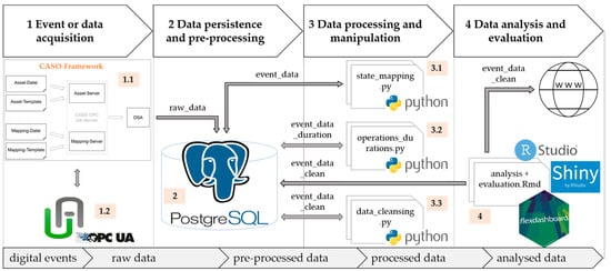 There are various options for data persistence depending on the type of data and their properties. If the data approach the characteristics of big data, NoSQL data bases, cloud systems, data warehouses, or data lakes are used. After the digital events have been acquired and persisted, they are pre-processed. This means that data from different sources must be converted into a consistent format.
