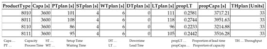 Therefore, the actual workload in time units is equal to the weighted mean of the lead time according to Equation (9):