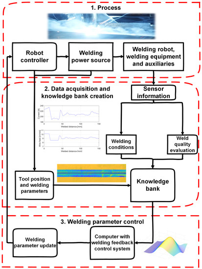 In terms of process feedback control, there are manually defined parameter adjustments or adjustment windows based on manually defined algorithms and AI-based systems. Manually defined parameter adjustment can be defined as a fully manually created parameter control library based on experiments or theory. Algorithm-based systems can be utilized as an example by using linear [12], curve-fitting [16] and model-free [17] adaptive controls. These control methods are effective ways to control the welding process. However, in traditional welding production, multiple parameters affect the weld quality. The research problem of this study is that the parameter control with multiple input parameters is inaccurate and complicated to create with manually defined adaptive control, thus resulting in inconsistent weld quality output.