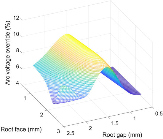 Both NN decision-making simulated control maps have variations in the edges of the parameter window. This visualizes the extrapolation tendency of the NN, as the extreme values do not have enough, or any, related data. However, as an example, the extreme value of the root gap (2.5 mm) operates as expected within a 0.5–2.5 mm parameter window. It would be beneficial to narrow the parameter window to consist only of reliable data if the system would be used in the production environment to increase the reliability of the system.
