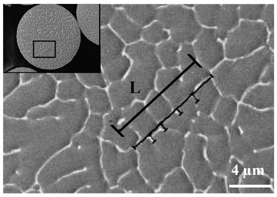 where N represents the number of secondary arms counted along one side of the primary arm, and L is measured as the length parallel to the primary arm between the first and the last secondary dendrite arm, as shown in Figure 3.