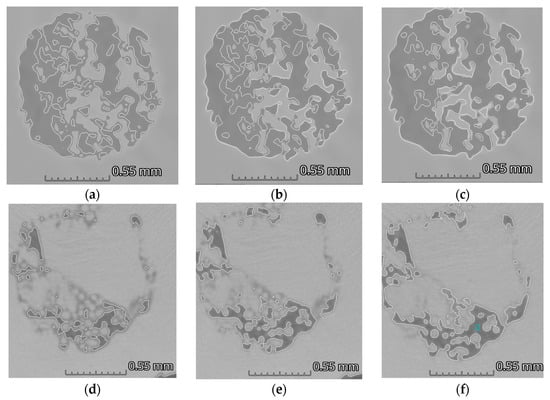 - Iassonov, P.; Gebrenegus, T.; Tuller, M. Segmentation of X-ray computed tomography images of porous materials: A crucial step for characterization and quantitative analysis of pore structures. Water Resour. Res. 2009, 45, W09415. [Google Scholar] [CrossRef]