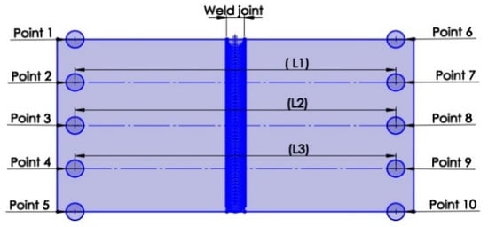 In order to calculate both angular distortion and transverse shrinkage, a Vernier caliper gauge is used to measure each point, as shown in Figure 15.