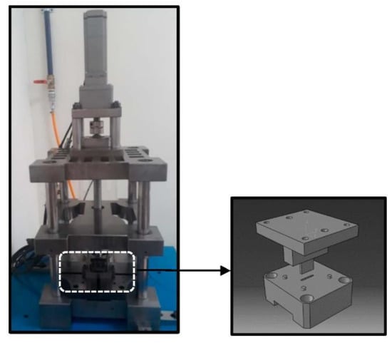 The microforming process was conducted using a 5 kN capacity microforming machine, as depicted in Figure 3. The machine was powered by an Oriental type NX940MS-PS10-3 servo motor equipped with an SCX10 motor controller. The punch and die used in the process were made from SKD 11 (AISI D2) material. The clearance between the punch and die was set at 0.01 mm per side [29]. Details of the tooling and experimental parameters can be found in Table 2. The punches and dies used in the microforming process are of two types, rectangular and circular. The circular ones are used for creating holes in the miniplate.