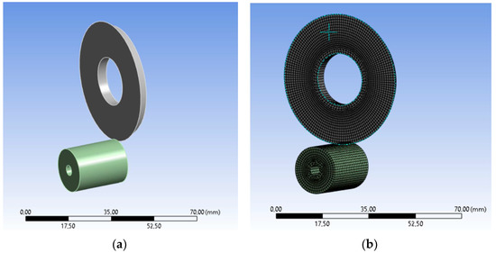 Three-dimensional model of workpiece machining and mesh creation: (a) three-dimensional model; (b) mesh creation.