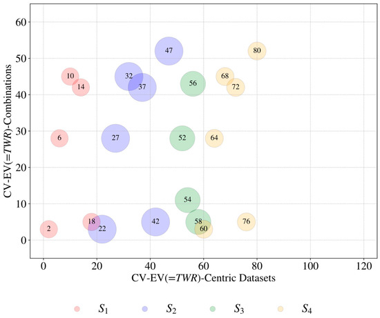 Apart from the above-mentioned cases (supporting and conflicting cases), challenges associated with uncertainty and contextual differences might appear, as shown in Figure 4 schematically. Here, uncertainty means the variability in the acquired CV–EV-centric datasets. It reflects how far apart the datasets are. Its quantification helps obtain more accurate predictions in terms of consistency. For example, less uncertainty means the CV–EV correlation is consistent, and the correlation may be generalized for other cases. High uncertainty means the CV–EV correlation is inconsistent, and the correlation may not be generalized. The remarkable thing is that even though CV–EV datasets exhibit a strong direct/indirect correlation, the associated uncertainty can reflect that the correlation is not good enough to be generalized, given that the uncertainty is high. Therefore, identifying only the CV–EV correlation is not adequate for effective decision-making. Uncertainty quantification is also needed to obtain complete knowledge underlying the datasets and make the right decisions. On the other hand, contextual differences appear when CV–EV-centric datasets entail different discourses without following a standard one because of the heterogeneity of sources associated with the different CV levels and the experimental design of the manufacturing process. Therefore, the BDA must meet the above-mentioned challenges for concluding a set of rules among CV–EV-centric datasets from BD. Based on the consideration described above, the following questions arise (already mentioned in Section 1, as well):