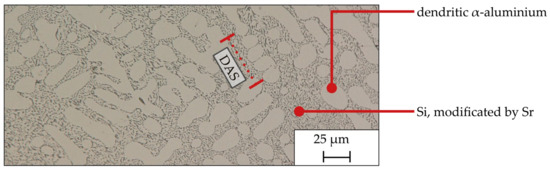 The DAS can be determined from the measured length of a dendrite stem and the number of dendrites. The DAS allows conclusions to be drawn regarding the solidification conditions and the mechanical properties. The smaller the DAS, the higher the corresponding mechanical properties [14]. The latter has a major influence on the suitability for joining and the load-bearing capacity of a joint.