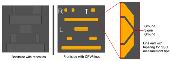 Advanced transmission line structures, also known as micromachined transmission line structures, can offer especially low losses and improved performance [4,5,6,7,8,9,10,11,12,13]. While most of the publications are dedicated to structures on silicon, some publications are available that deal with such structures on PCB substrates [6,8,10]. The main drawback of micromachined structures on PCBs is the sequential mechanical milling or laser milling process that is necessary to form the structures needed.