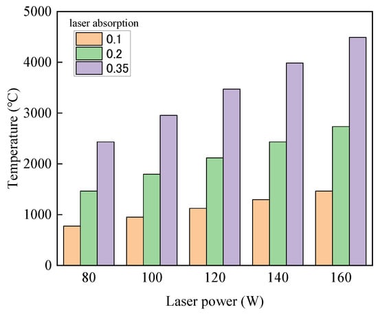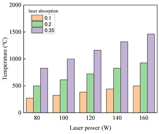 In this experiment, the laser scanning speed was maintained at a constant value for each condition, while the laser power was varied. As a result, the input energy to the substrate was directly influenced by the laser power. When the laser power increased, it led to a corresponding increase in the input energy delivered to the substrate. As the input energy increased, more heat was generated, resulting in a higher peak temperature within the substrate. Therefore, it can be inferred that the increase in laser power is the primary factor contributing to the elevation of the peak temperature in the substrate.
