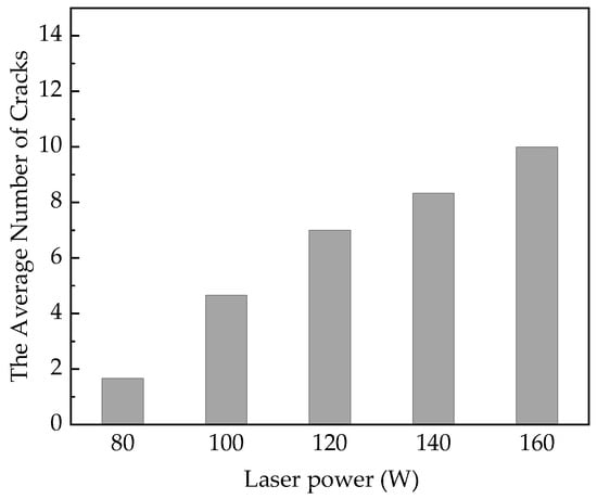 The average number of cracks detected by the AE sensor vs. laser power [18].