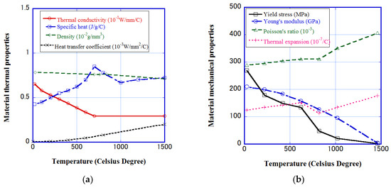 Temperature-dependent material properties: (a) thermal physical; (b) mechanical.