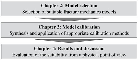 At the Institute for Machine Tools and Industrial Management (iwb) of the Technical University of Munich, the software tool AscentAM (https://www.mec.ed.tum.de/en/iwb/research-and-industry/projects/additive-manufacturing/ascent-am-simulation-des-laserstrahlschmelzens-von-triebwerkskomponenten/, accessed on 22 November 2023) was developed to simulate the PBF-LB/M process. It is based on a weakly coupled thermo-mechanical FEM simulation that predicts deformations and residual stresses in the part [27]. This process simulation of PBF-LB/M could enable a physically motivated assessment of the manufacturability of geometries prone to residual stress-induced failure. For this purpose, suitable fracture models have to be identified and integrated into the simulation software. It is expected that the identified models will allow for both the prediction and localization of crack initiation as well as the calculation of a possible crack propagation. In this regard, this paper explores two research questions: