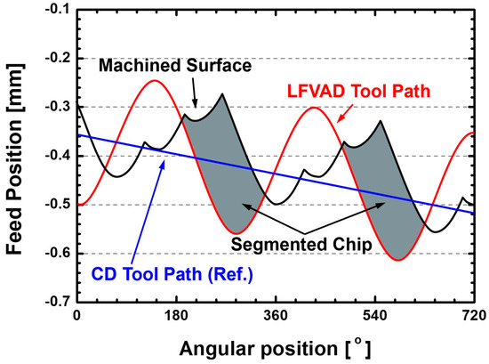 Figure 4. In LF-VAD, axial vibration is introduced to the axial feeding movement of the CD process. This sinusoidal vibration effectively segments the chips, facilitating their crushing and subsequent removal.