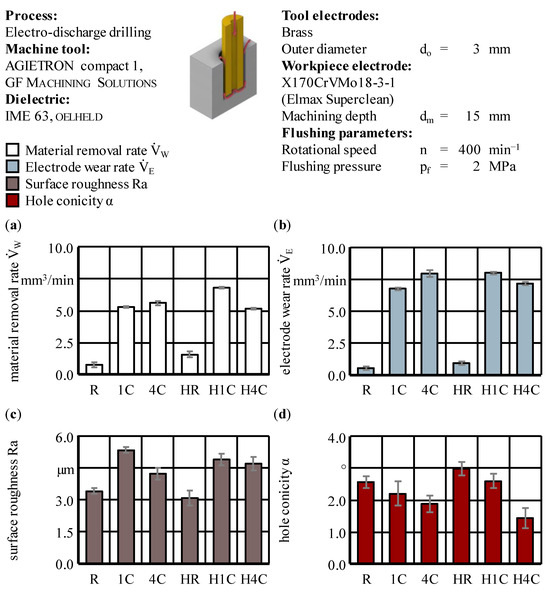 - Uhlmann, E.; Polte, J.; Streckenbach, J.; Dinh, N.C.; Yabroudi, S.; Polte, M.; Börnstein, J. High-Performance Electro-Discharge Drilling with a Novel Type of Oxidized Tool Electrode. J. Manuf. Mater. Proc. 2022, 6, 113. [Google Scholar] [CrossRef]