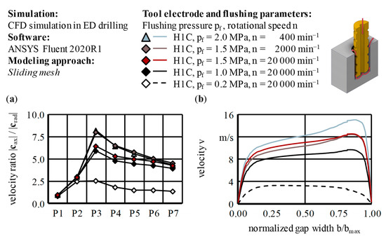 - Kliuev, M.; Baumgart, C.; Wegener, K. Fluid Dynamics in Electrode Flushing Channel and Electrode-Workpiece Gap During EDM Drilling. Procedia CIRP 2018, 68, 254–259. [Google Scholar] [CrossRef]