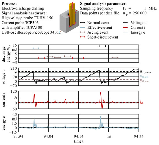 - Thißen, K.; Streckenbach, J.; Koref, I.S.; Polte, M. Signal analysis on a single board computer for process characterisation in sinking electrical discharge machining. In Production at the Leading Edge of Technology; Behrens, B.A., Brosius, A., Drossel, W.G., Hintze, W., Ihlenfeldt, S., Nyhuis, P., Eds.; WGP 2021, Lecture Notes in Production Engineering; Springer: Cham, Switzerland, 2021; pp. 169–176. [Google Scholar] [CrossRef]
