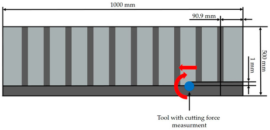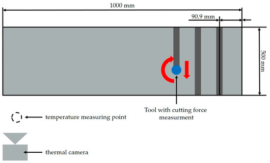 The experimental setup for notch milling is schematically illustrated in Figure 4. The notch milling tests were used to evaluate the effect of tool wear on cutting forces and process temperatures, enabling a comparison between the adhesively bonded and soldered tools.