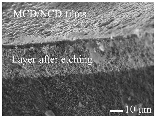 - Lu, F.; Hao, T.; Bai, X.; Fu, Z. Research on the innovative pretreatment to improve the adhesion and performance of diamond coatings. Fuller. Nanotub. Carbon Nanostructures 2022, 30, 1002–1010. [Google Scholar] [CrossRef]