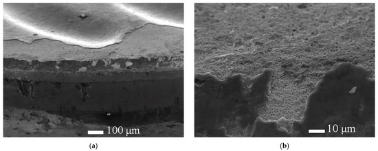 Before applying a diamond coating, it is necessary to pay attention to the condition of the substrate, which was an alloy H10F containing 10% Co. However, X-ray spectral analysis from the surface (JSM-7001F, JEOL, Tokyo, Japan) showed its significant enrichment with cobalt up to 75% (Figure 3a,b), probably due to the peculiarities of the plate manufacturing technology.