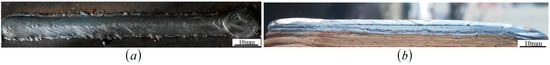 The morphologies of the two processes are compared as follows: (a) free deposition forming pass; (b) the side of the pass is rolled.