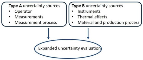 According to the Guide to the Expression of Uncertainty in Measurement (GUM) [29], uncertainty is the parameter associated with the result of a measurement that characterizes the dispersion of the same values that could reasonably be attributed to the measurand; the knowledge of this parameter affects the evaluation of a manufacturing process and realized products.