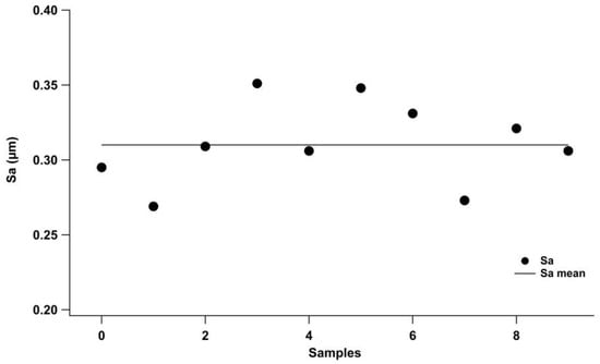 Surface roughness dispersion due to the uncertainty associated with the standard deviation of surface roughness (Sa) on ten samples. The continuous line is the mean value.