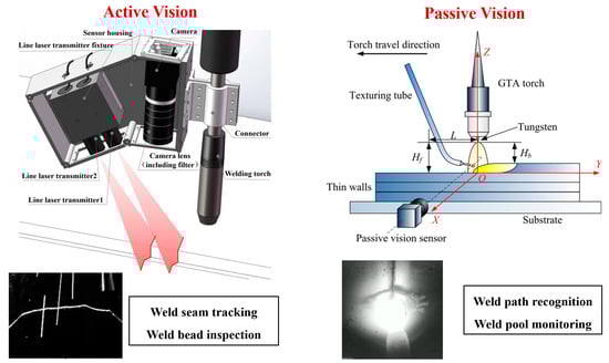 - Chen, S.B.; Wu, J.; Chen, S.B.; Wu, J. Visual sensing systems for arc welding process. In Intelligentized Methodology for Arc Welding Dynamical Processes; Springer: Berlin/Heidelberg, Germany, 2009; pp. 35–55. [Google Scholar]
