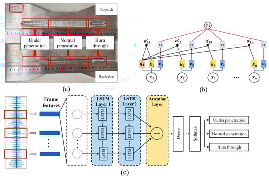 Attention is a complicated mental process that is essential for humans to survive [86]. An essential characteristic of perception is that people typically do not handle complete information simultaneously in its full extent. Instead, people have a tendency to focus on some particular piece of information, while disregarding other observable information simultaneously. This is a method for humans to efficiently choose valuable information from a large amount of information using limited brain power. The development of the attention mechanism significantly enhances the effectiveness and precision of perceptual information processing [87]. It can be found that sensing information, as a computer perception method, can also optimize its calculation process by imitating the human attention mechanism. Recently, the attention mechanism has been employed as a method for allocating resources to address the issue of information overload. When processing power is restricted, it has the ability to prioritize and handle crucial information using available resources [88]. As research progresses, the attention mechanism has been a popular component in neural networks and has been utilized in a wide range of tasks, including picture caption generation, machine translation, action identification, and graph analysis. The attention mechanism not only enhances performance, but it can also serve as a tool to elucidate perplexing neural network architectural behavior [89]. Therefore, we can apply the attention mechanism to welding sensor information processing, imitate experienced welders’ screening and attention of welding process information, improve the processing speed of sensor information and model accuracy, and try to combine the physical mechanism of the welding process with neural network models to make scientific explanations.