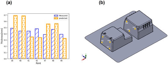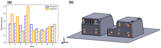 (a) Thickness distribution on side 3. (b) Experimental measurement points of the thickness on side 3.