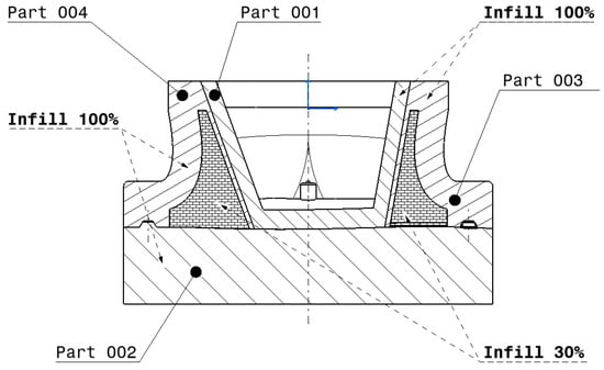 | Severe problems of CTE mismatch. | Avoid the use of dissimilar materials. Strategically print the semi-moulds and the joining elements to have uniform thermal expansion in each direction. |