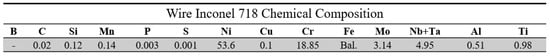 Regarding the chemical composition, both materials fall under the determination of the AMS for the Inconel 718, and while the chemical composition of the welding wire was specified exactly by the providing company, the other material is only presented as specified “ranges”. Figure 3 presents the chemical composition of the Inconel 718 wire.