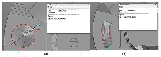 Scheme for calculating the cross-sectional area of cooling channels of various shapes. (a) Round section: S = 5.309 mm2. (b) Optimized profile: S = 6.8 mm2.